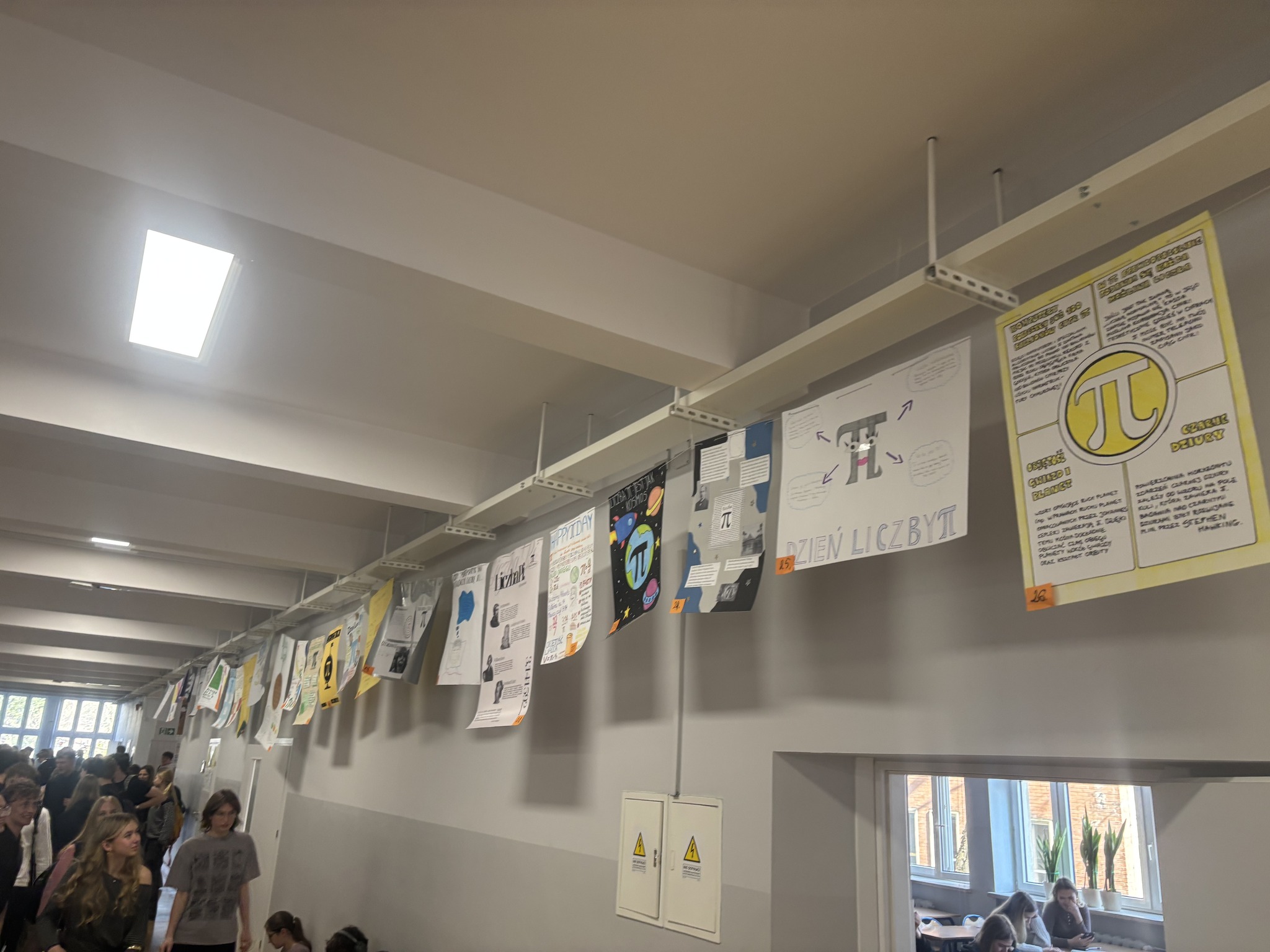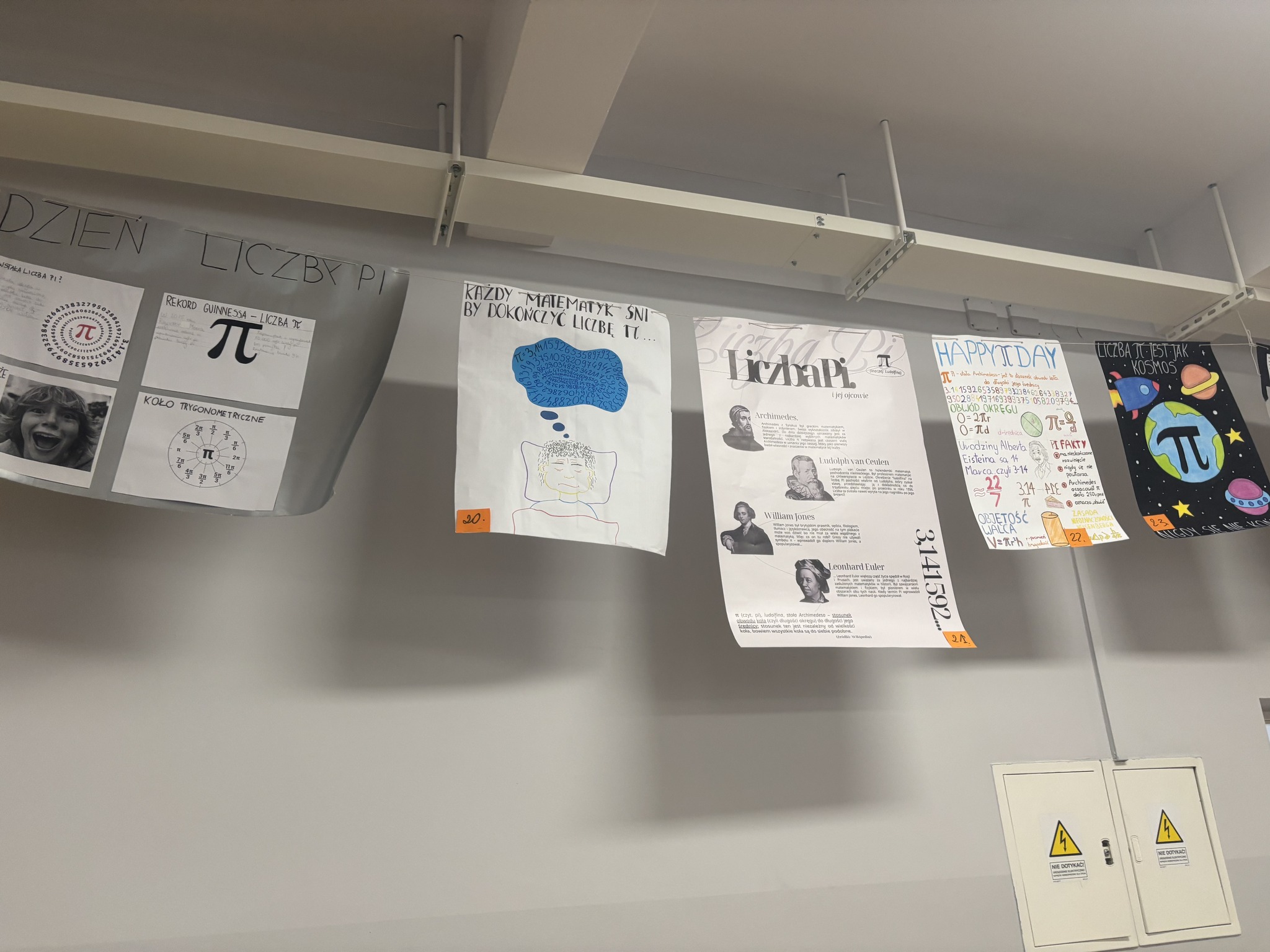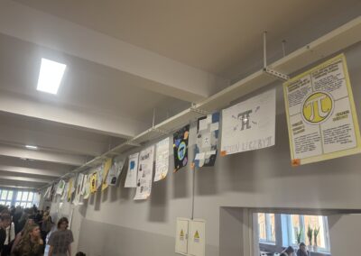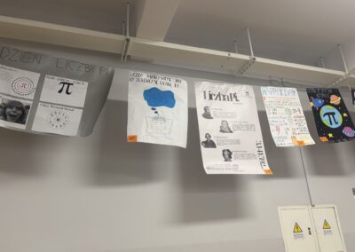Jedną z atrakcji była wystawa plakatów poświęconych liczbie π, przygotowanych przez uczniów. Prace prezentowały ciekawostki, historię oraz różne zastosowania tej niezwykłej liczby.