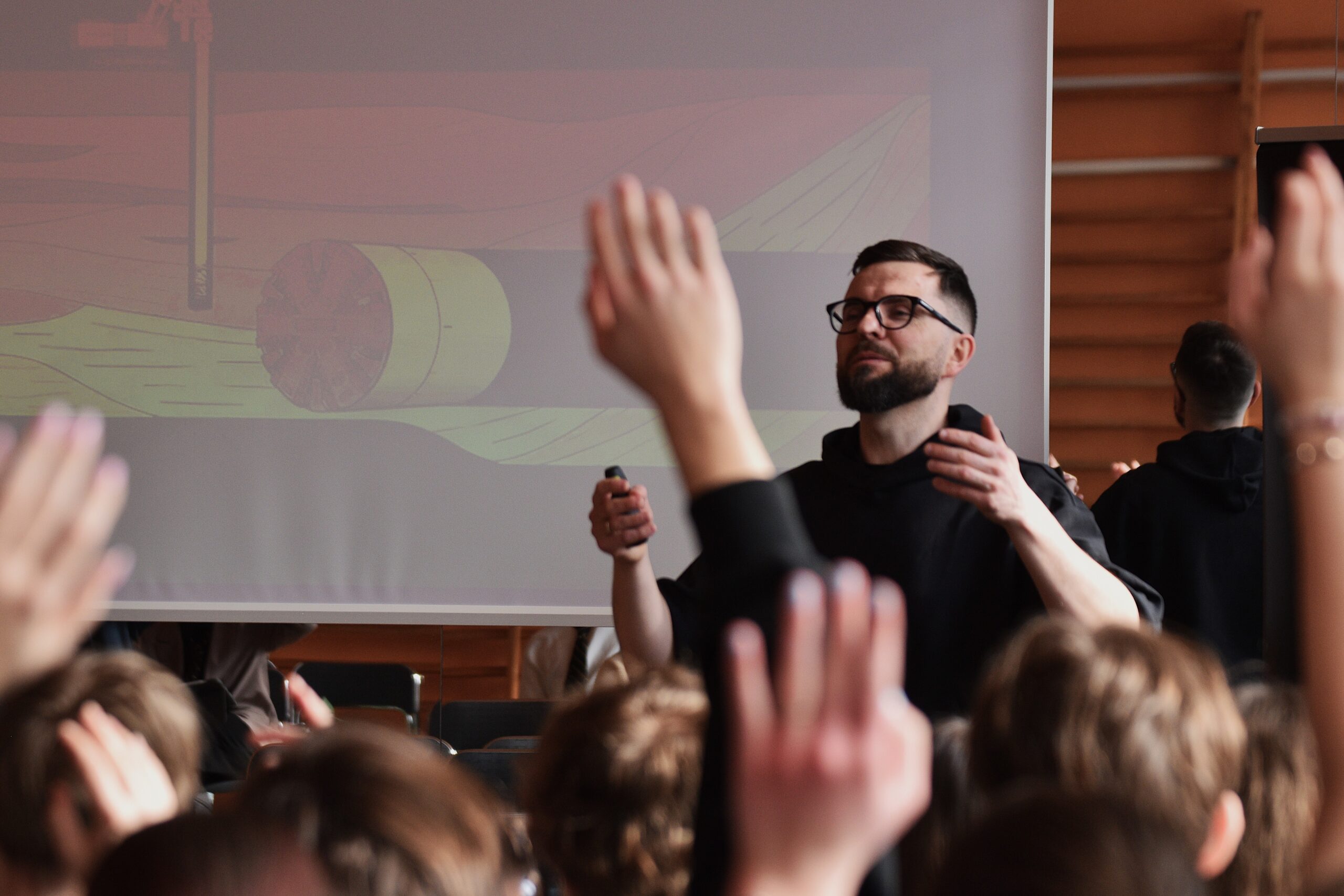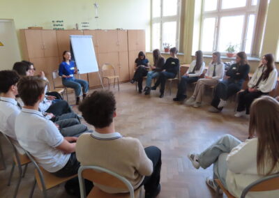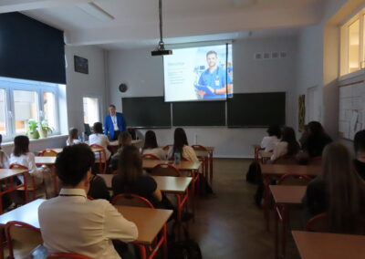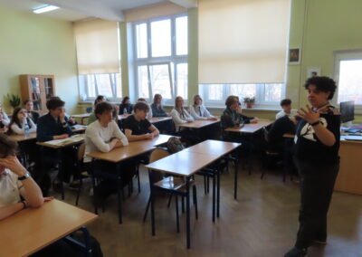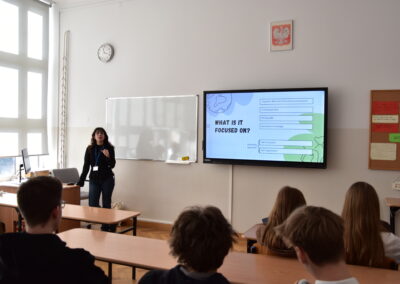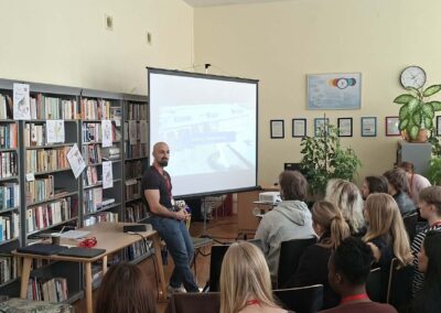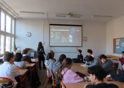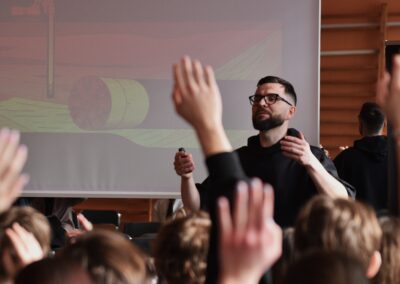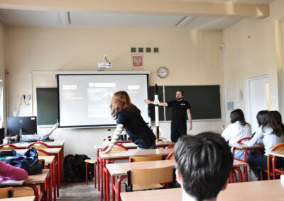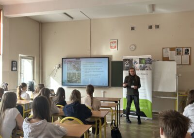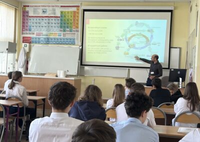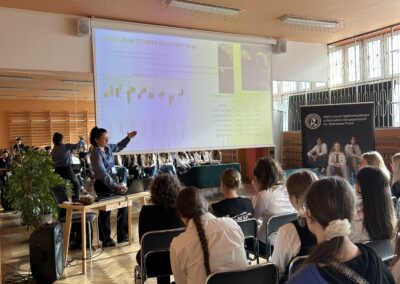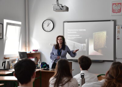 Karolina Rumowska przybliżyła uczniom zawód architekta i inżyniera budowlanego, pokazując, jak łączyć pasje artystyczne z wiedzą techniczną. Dr Maksym Łaszewski opowiedział o hydrologii oraz historii lokalnych źródeł w wykładzie poświęconym Warszawie i jej okolicom.