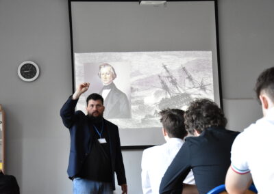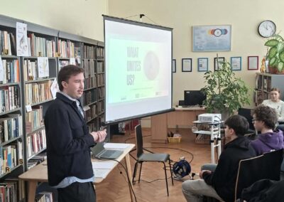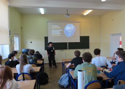 Tematy humanistyczne i społeczne poruszyły przedstawicielki Stowarzyszenia Pracownia Etnograficzna – Justyna Orlikowska i Justyna Szymańska. Uczniowie poznali m.in. antropologię turystyki, współczesne oblicza Afryki oraz zagadnienia związane z prawami kobiet i działalnością Amnesty International. Daga Bożek opowiedziała o pracy polarników, a Michał Brennek przybliżył rozwój prognozowania pogody – od tradycyjnych obserwacji po wykorzystanie sztucznej inteligencji i superkomputerów.