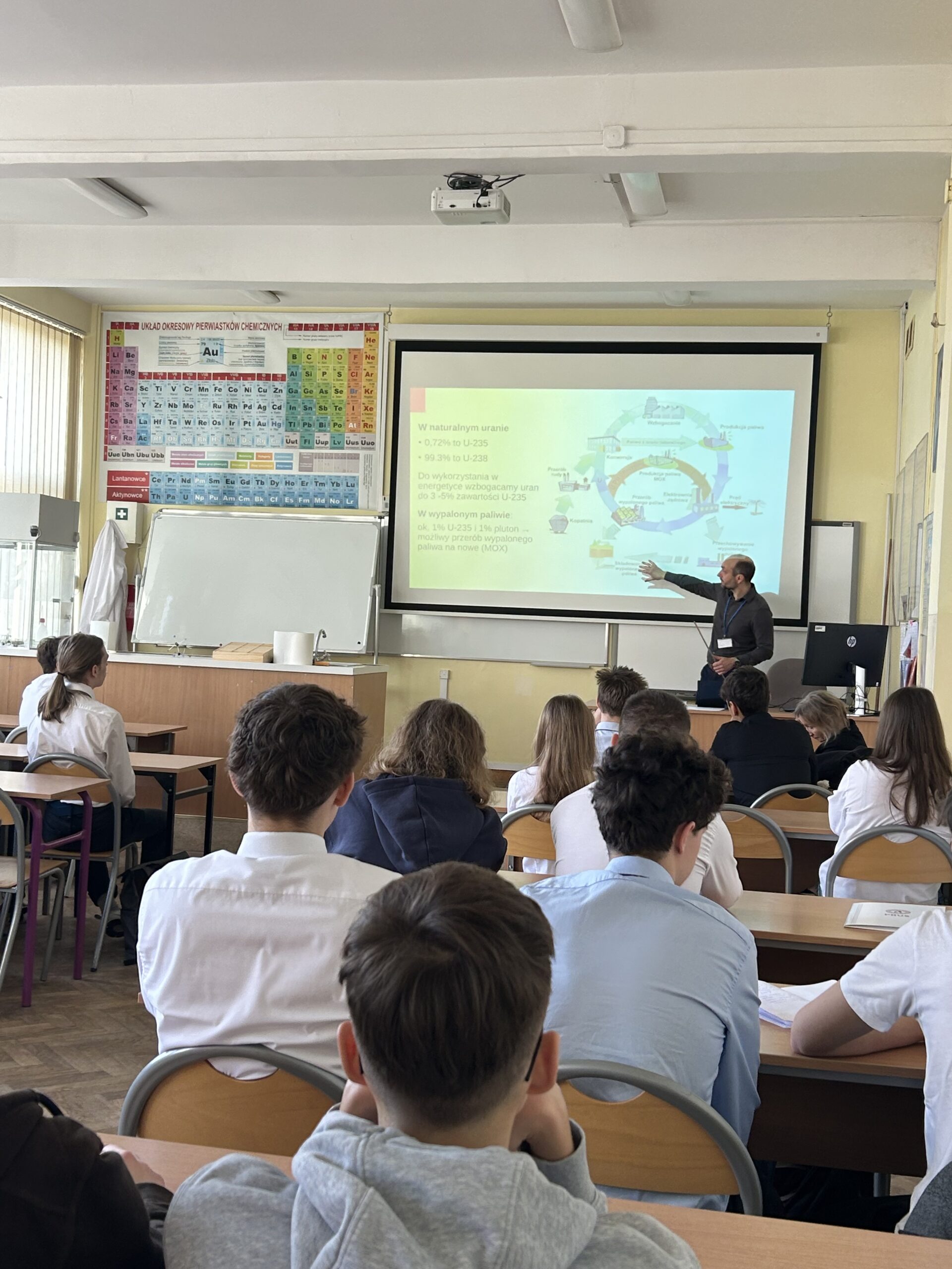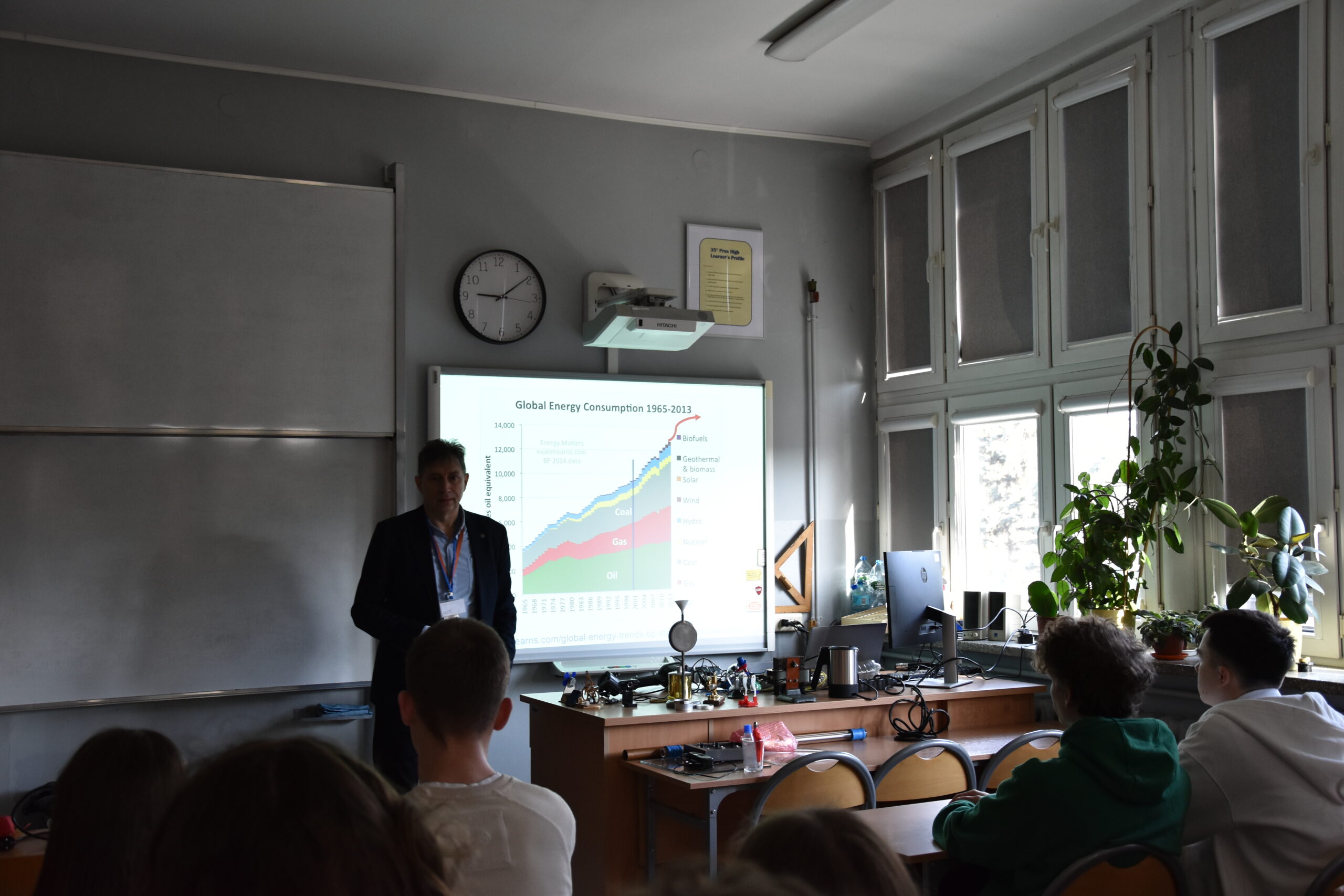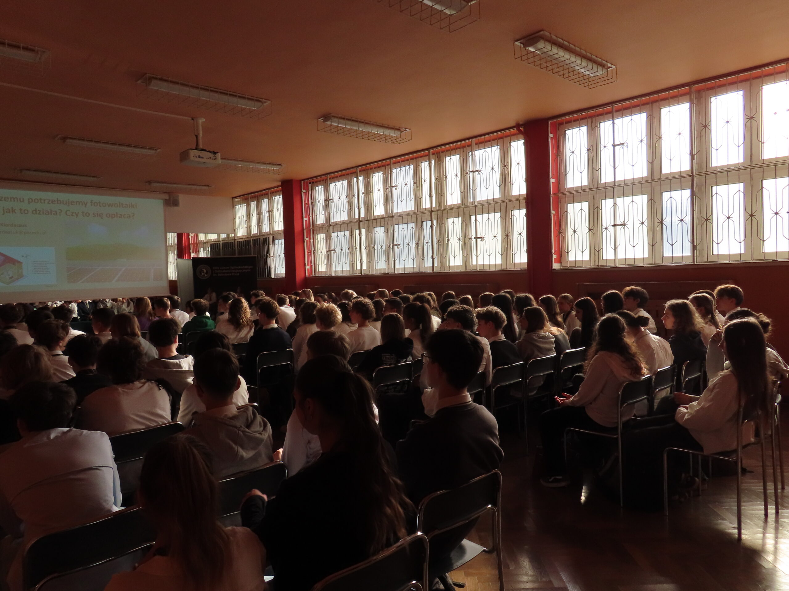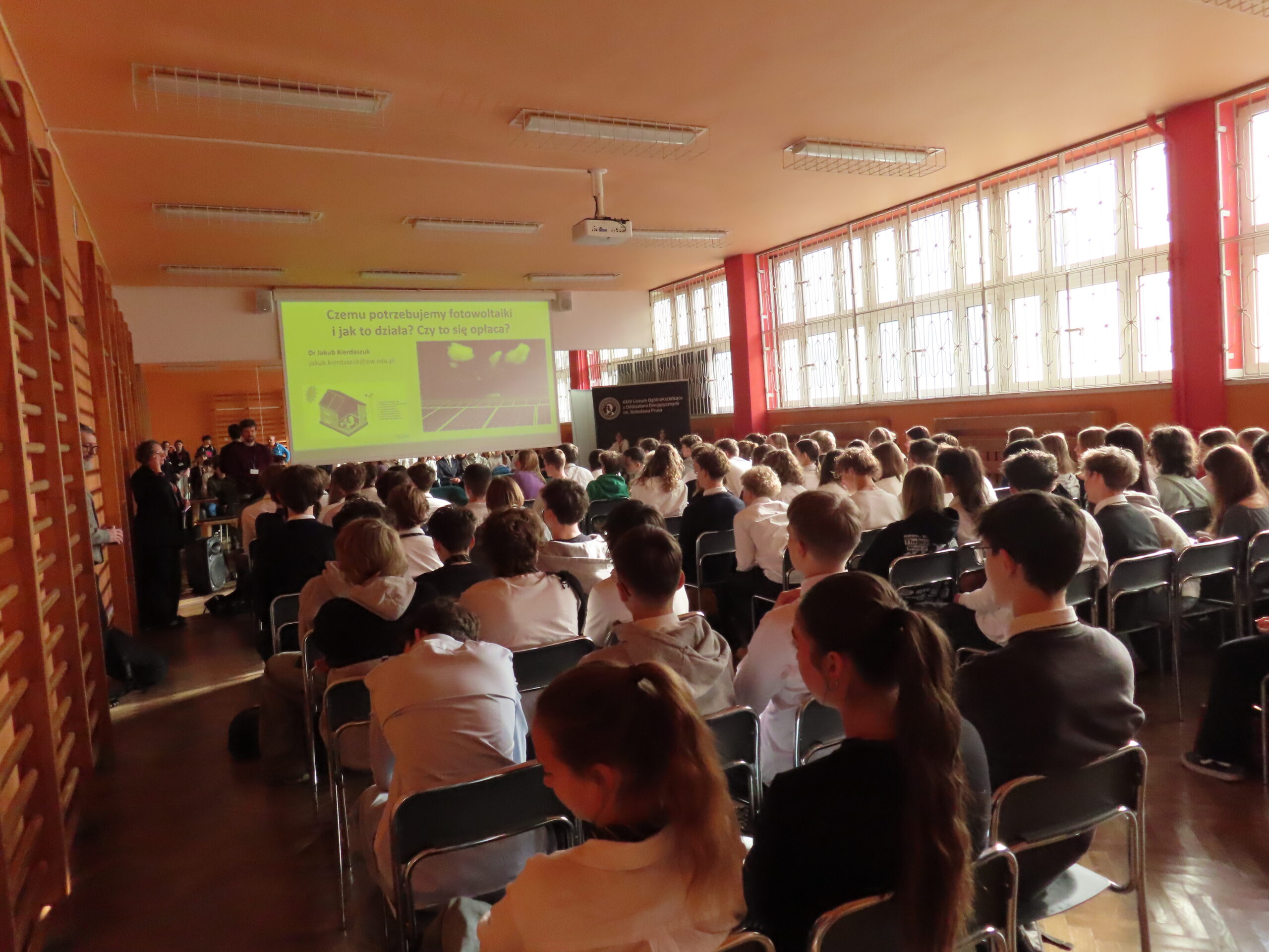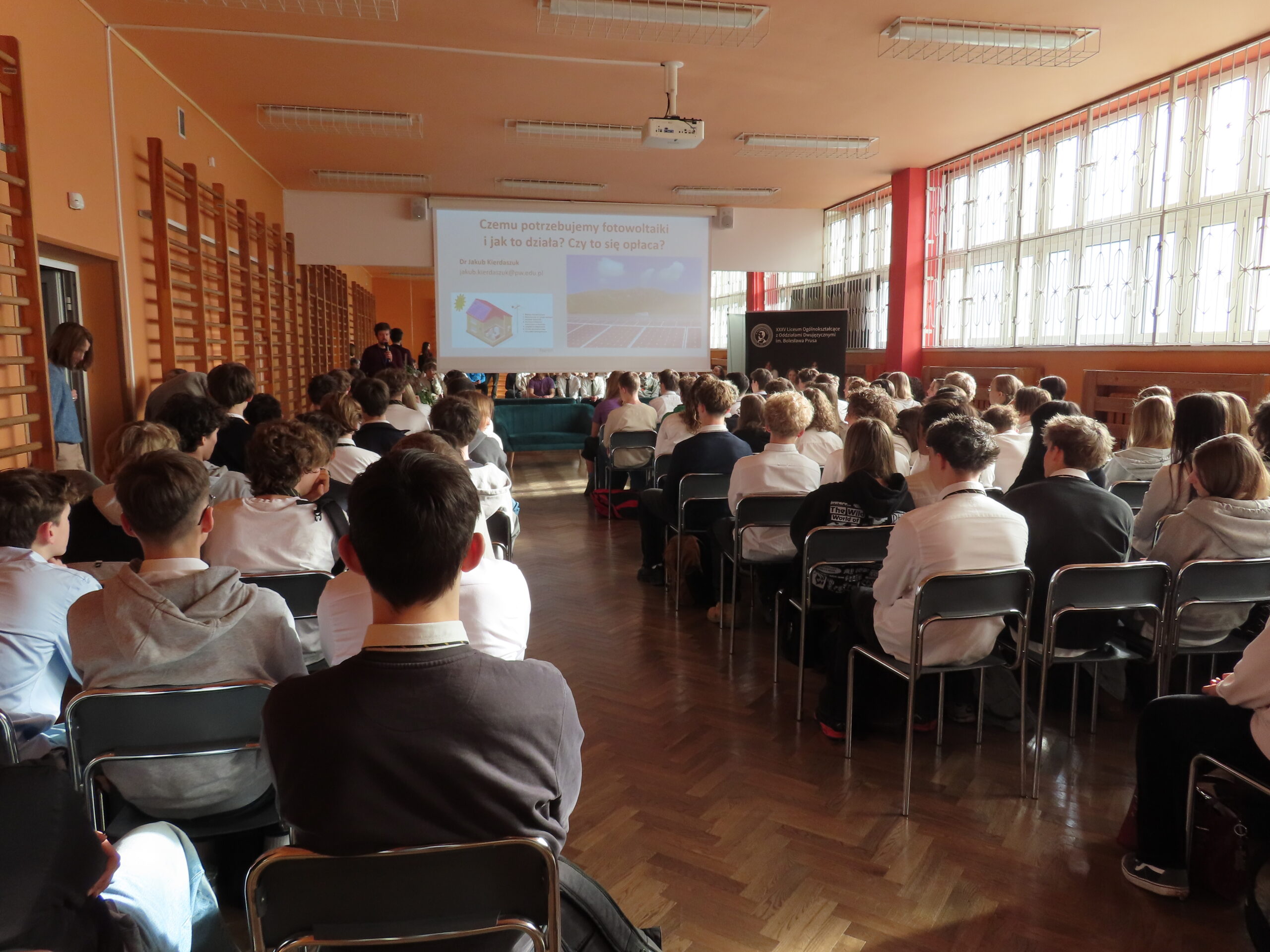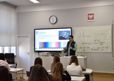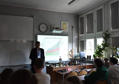 O wyzwaniach współczesnej energetyki opowiadali Adam Rajewski, dr hab. inż. Daniel Kikoła oraz dr Jakub Kierdaszuk – absolwent naszej szkoły, który przybliżył zagadnienia związane z fotowoltaiką.