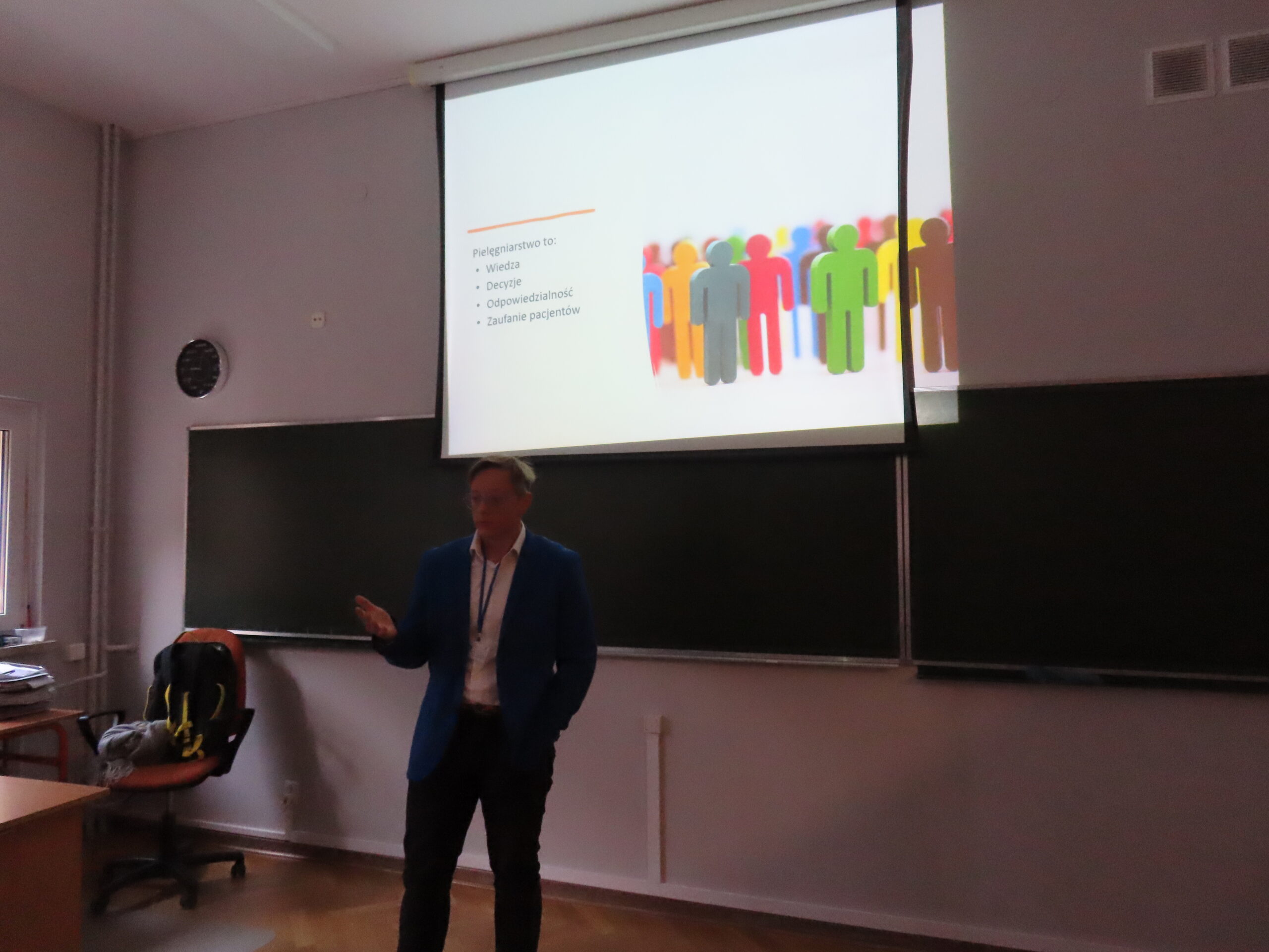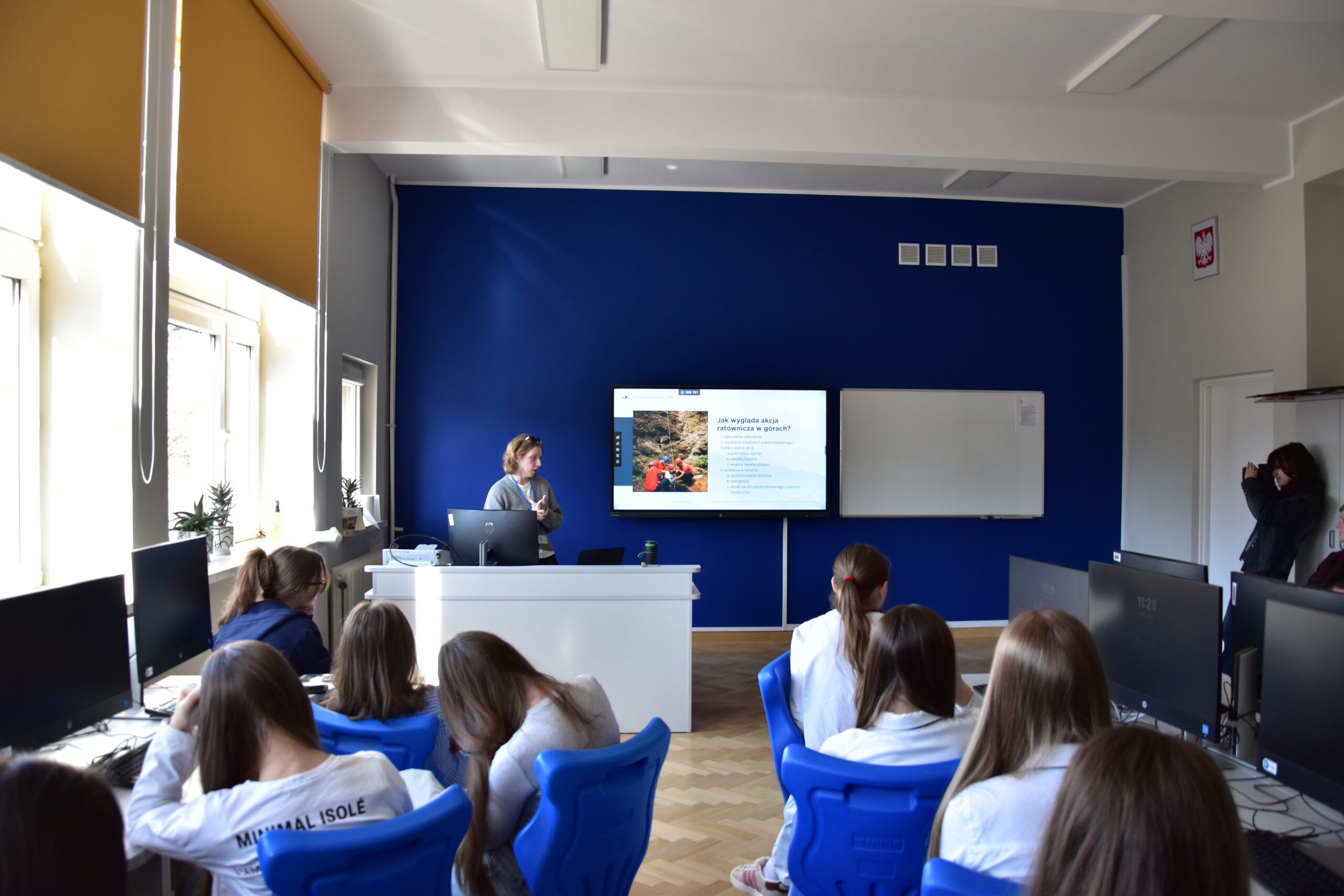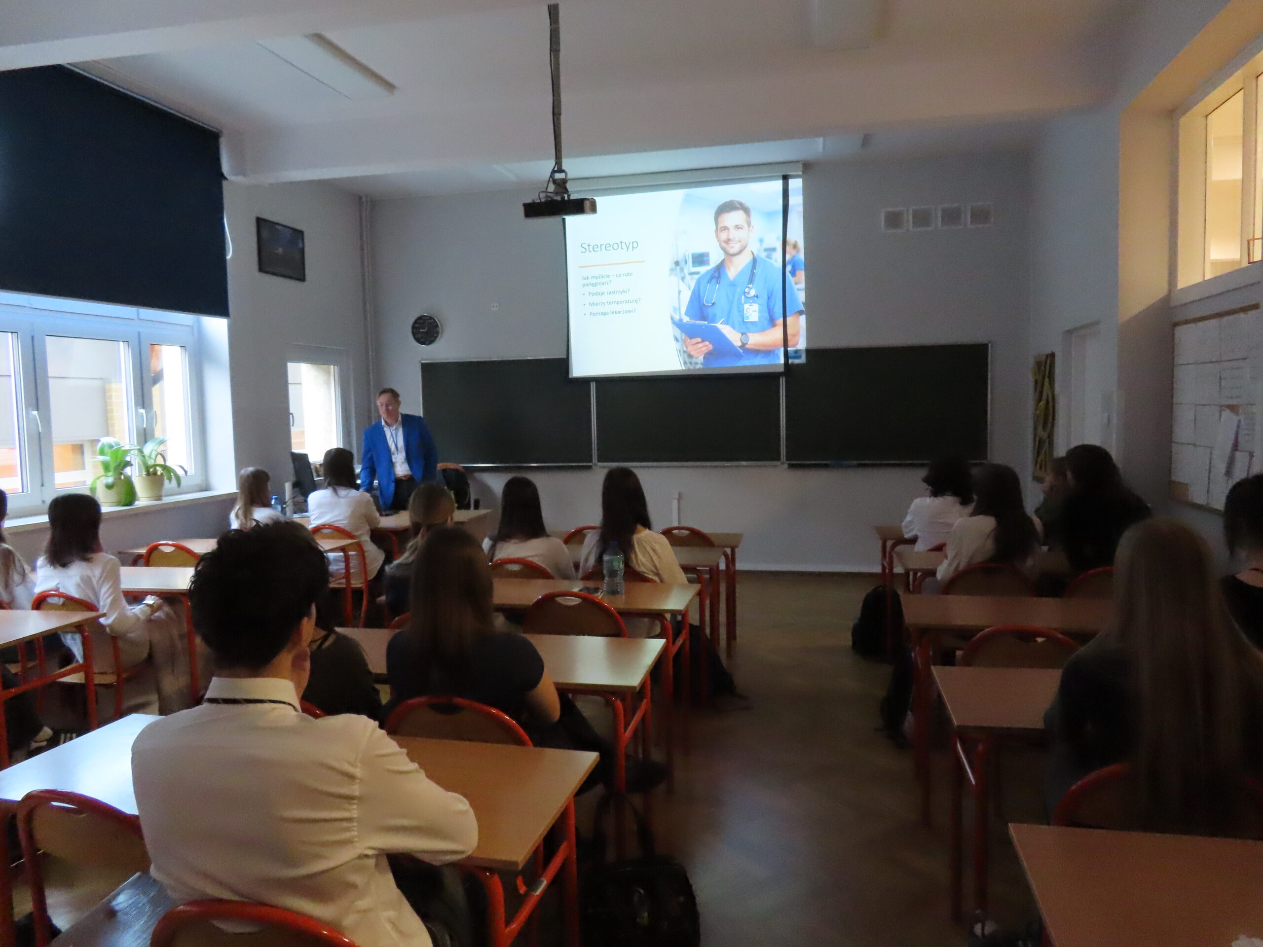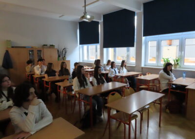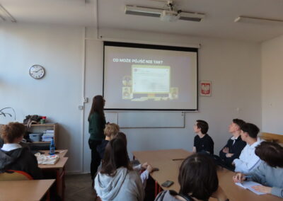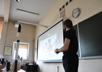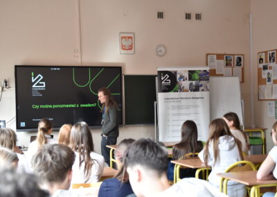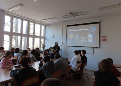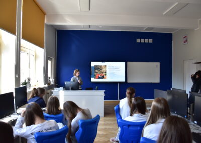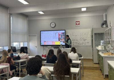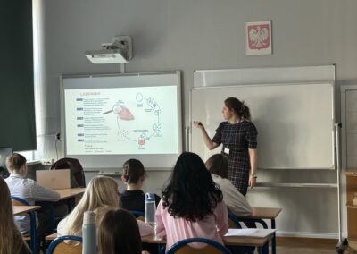 W dniu 18 stycznia 2023 w naszym liceum, w ramach projektu Aktywna Tablica 2021, odbyła się lekcja pokazowa dla nauczycieli z międzyszkolnej sieci szkół współpracujących. Pani Renata Sidoruk-Sołoducha zaprezentowała w klasie 2c możliwości zastosowania TIK i tablicy interaktywnej w nauczaniu biologii. Nauczyciele z LXXII Liceum Ogólnokształcącego przy ul. Grochowskiej, Zespołu Szkół Nr 12 przy ul. Siennickiej oraz Zespołu Szkół Gastronomiczno – Hotelarskich przy ul. Majdańskiej mieli okazję poznać nowoczesne metody pracy przy omawianiu tematu ,,Czy bezkarnie możemy przetaczać krew?’’.
