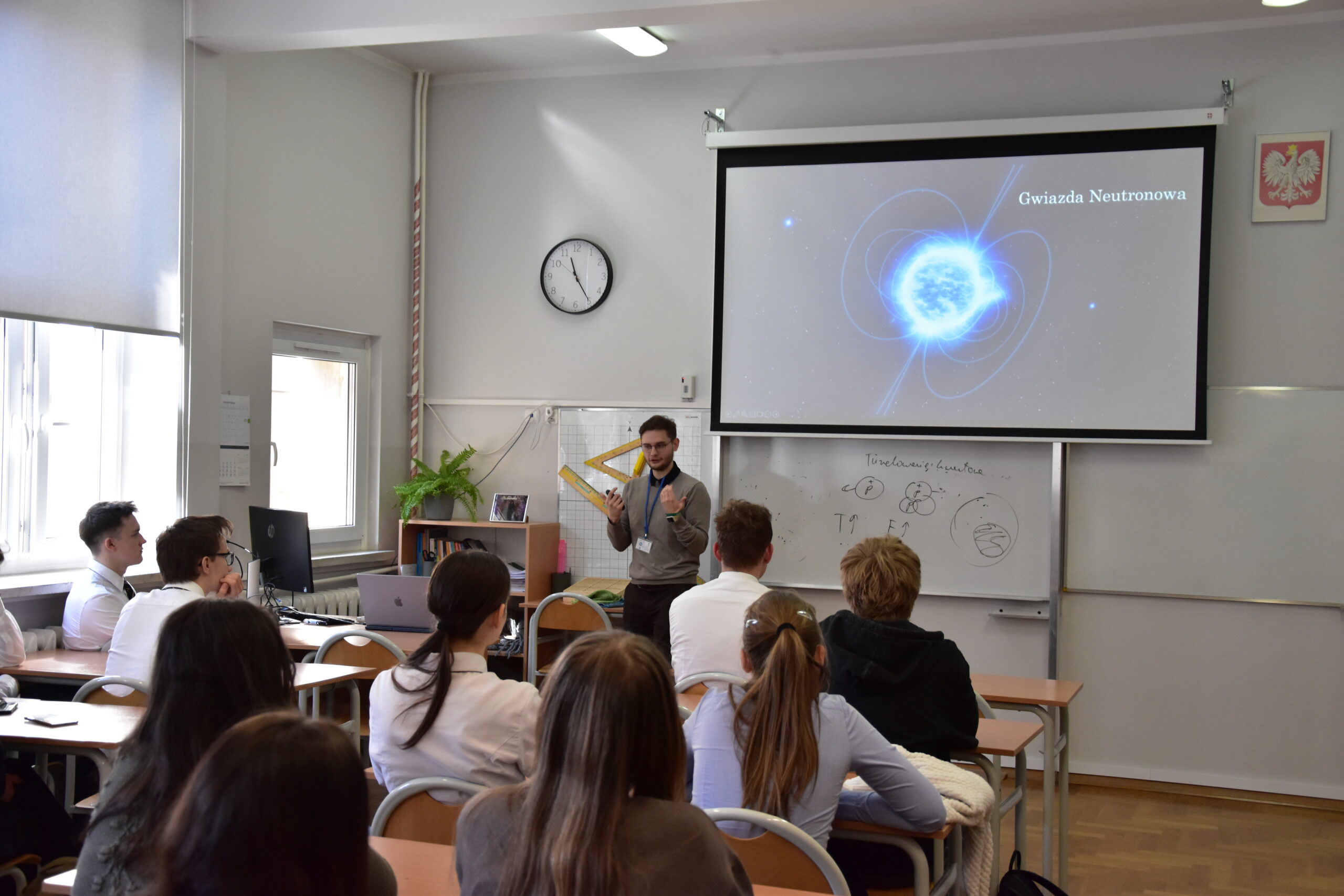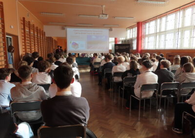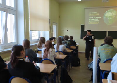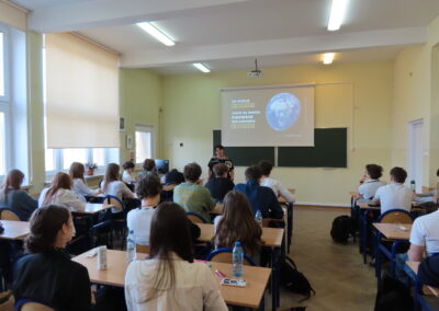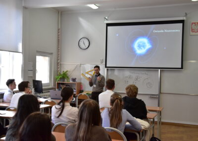 Uczniowie mieli okazję wyruszyć w fascynującą podróż w kosmos dzięki wykładom dr Natalii Zalewskiej o misjach na Marsa oraz Patryka Matery o funkcjonowaniu gwiazd.