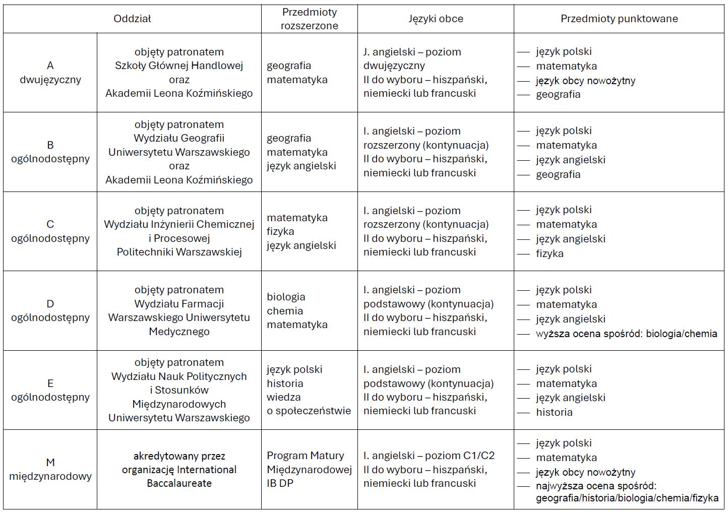PLANOWANE ODDZIAŁY W ROKU SZKOLNYM 2026/2027