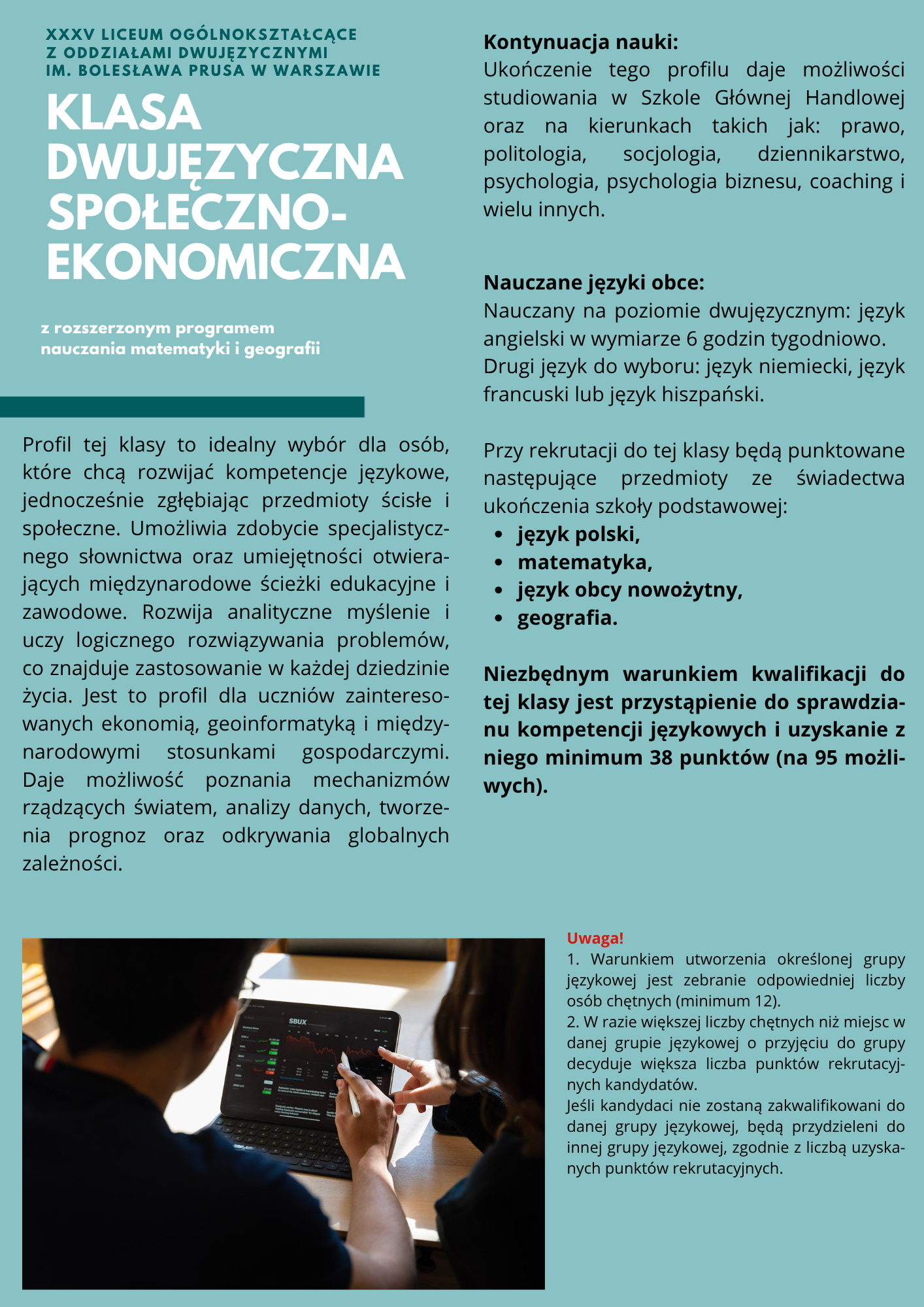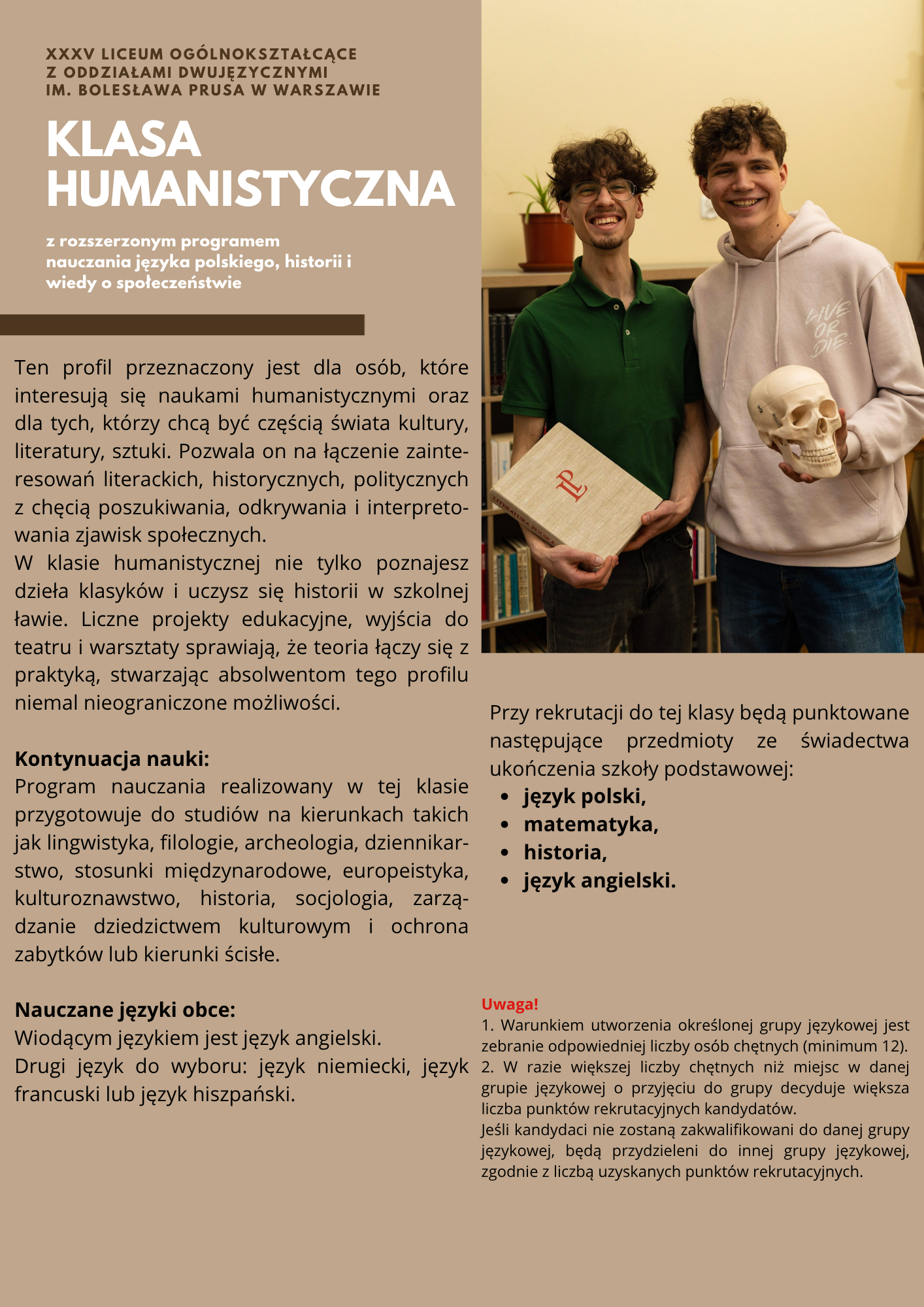 o godzinie 17.00 spotkanie dla kandydatów do klas ogólnodostępnych i dwujęzycznych,