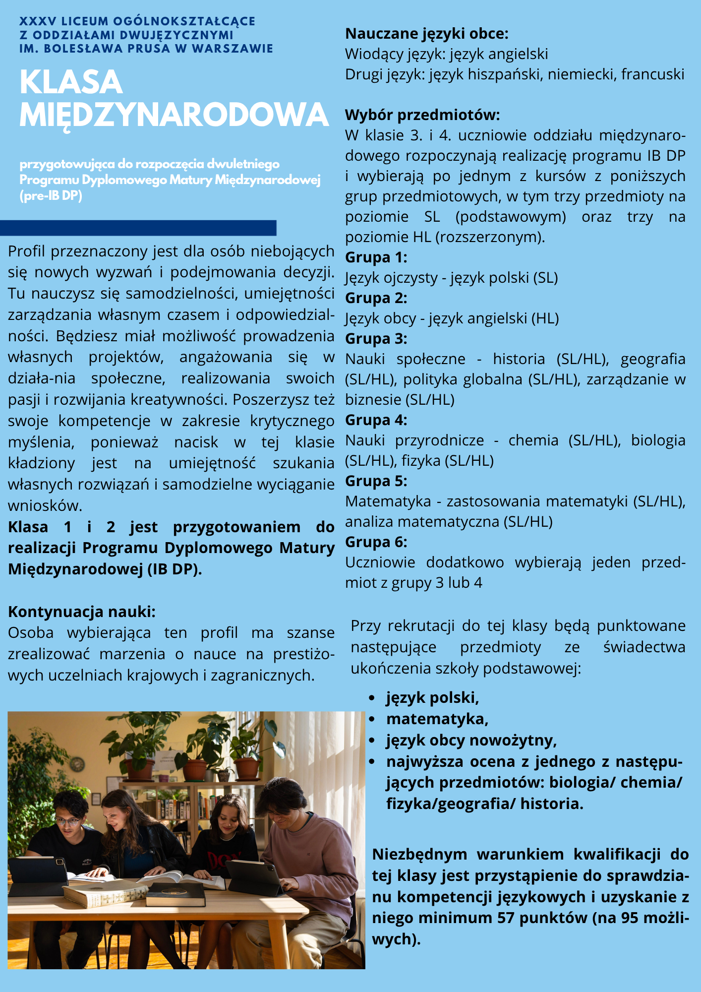 o godzinie 18.00 spotkanie dla kandydatów do klasy międzynarodowej.